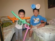 2007年8月の中旬から10日間、ママと6才、4才のボーイズ、そして妹さんご夫婦が英語スピーカー宅にホームステイ、ママとお子様はデイケアを体験されました。 長い長い間、温めてきた構想=親子でデイケアが、発熱により行けなくなった時には、残念でなりませんでしたが、妹さんご夫婦の助けで、何とか願いが叶って本当によかったです。皆さんで来てくださってありがとうございました。バルーンファイト面白かったね♪ |