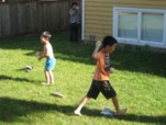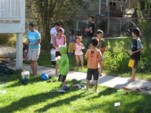 | ステイ先の娘さんたちのバースデーパーティーにも参加しました。Kママとお子さんもいらして楽しいひと時を過ごしました。中でも子ども達が喜んだのはお庭での「バルーンファイト!」水風船をみんなで投げまくっておおはしゃぎ。良い体験が出来ました。 |